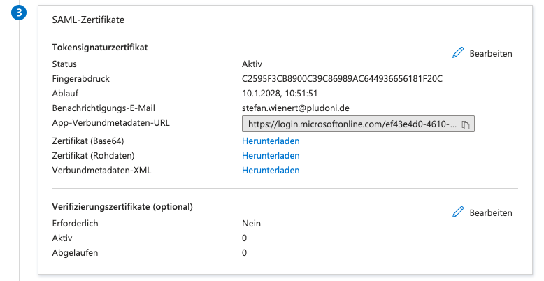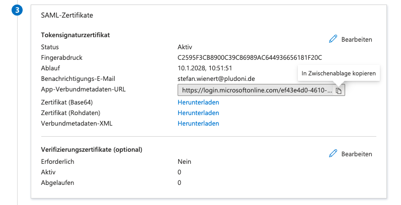 Speichern Sie die Konfiguration. Kopieren Sie danach den Link zur Verbundmetadaten-URL: