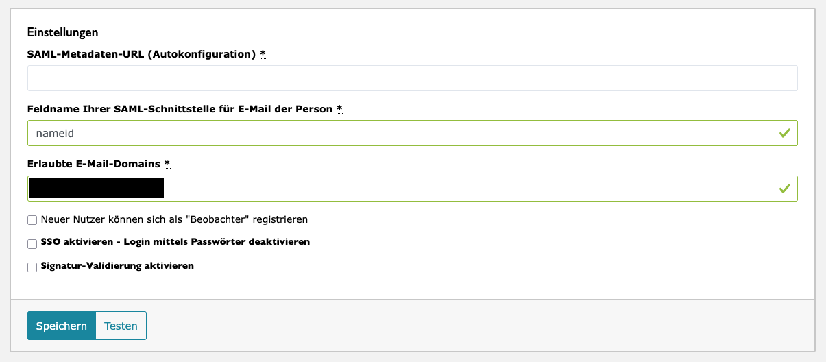 In Ihrer EBMS-Instanz: Tragen Sie die Verbund-Metadata URL ein
