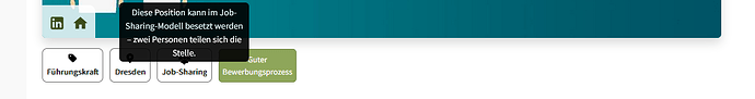 Job-Sharing wird als "Badge" neben anderen Eigenschaften Ihrer Stellenanzeige angezeigt. Hier am Beispiel von https://www.sanosax.de.